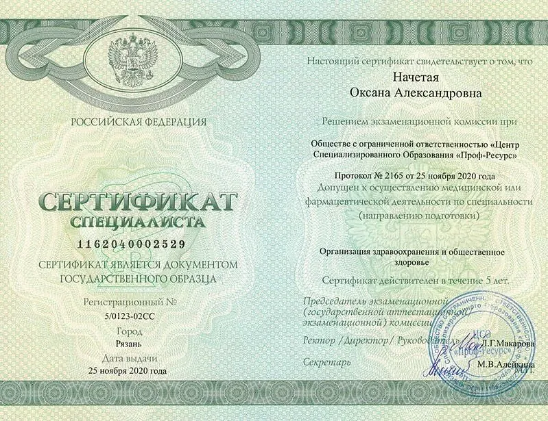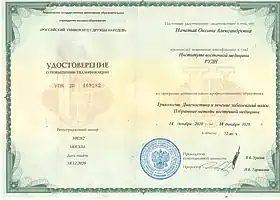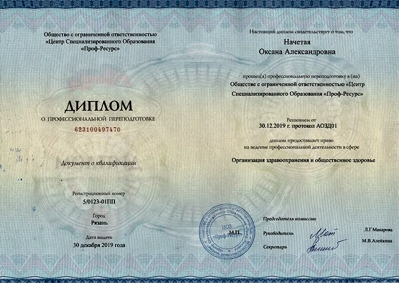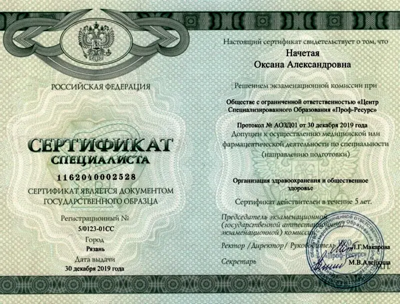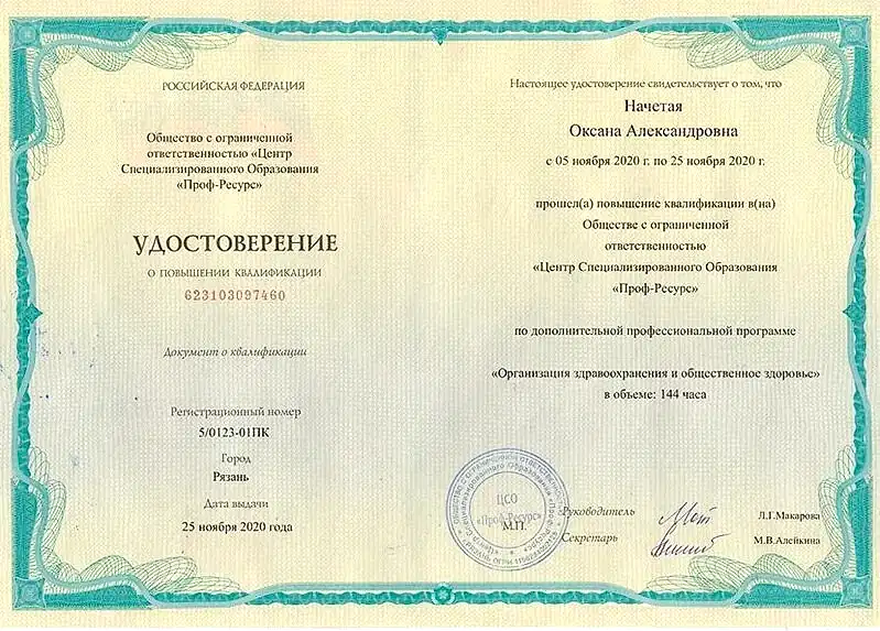 2020 г. Повышение квалификации по специальности «Организация здравоохранения и общественного здоровья»