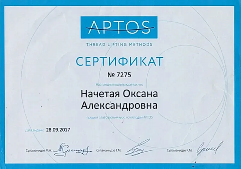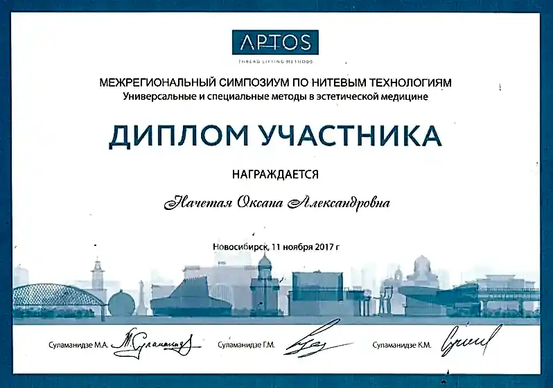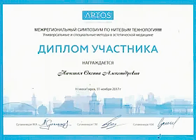 2017 г. Базовый курс по нитям АПТОС . Участник межрегионального симпозиума по нитевым технологиям