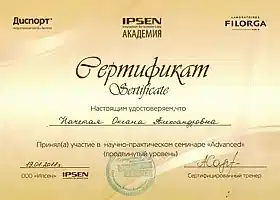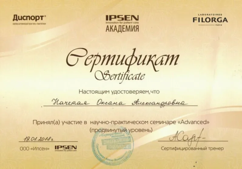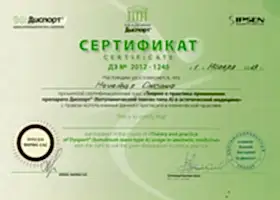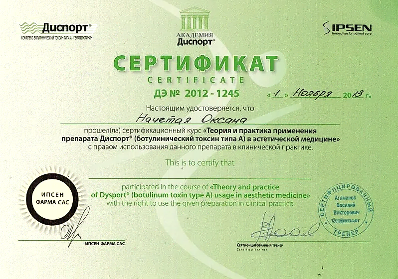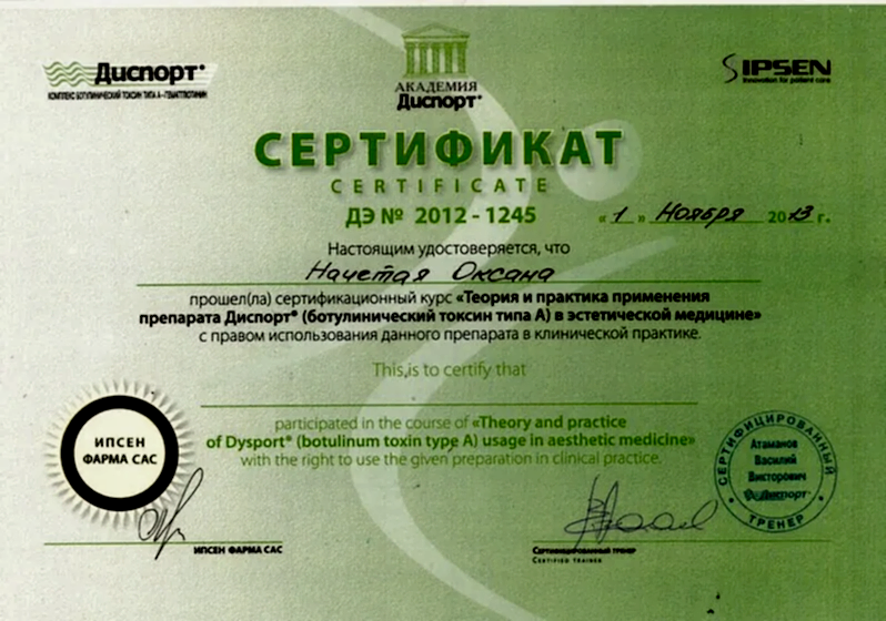 2013 г. Сертификационный курс «Теория и практика применения препарата Диспорт в эстетической медицине»