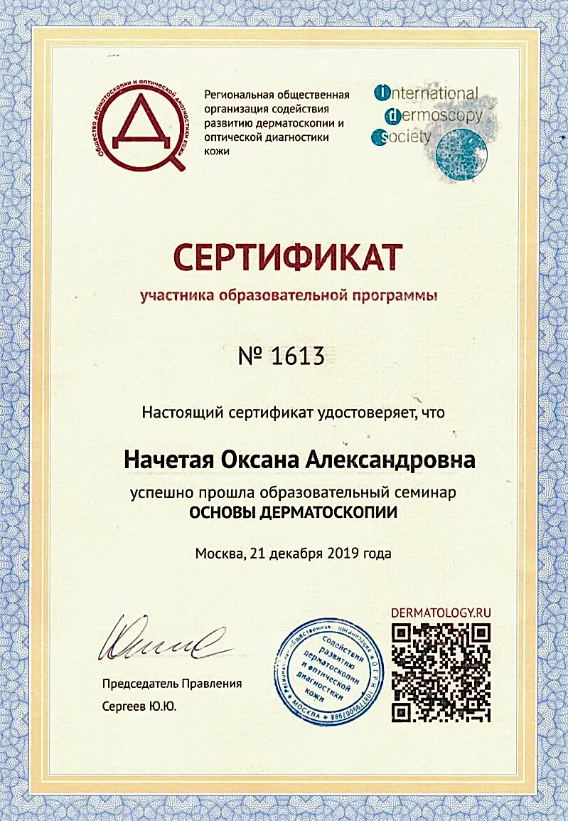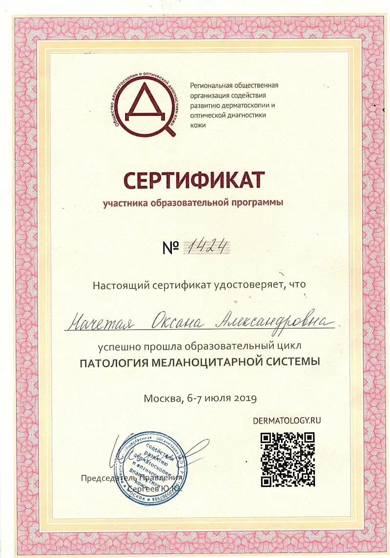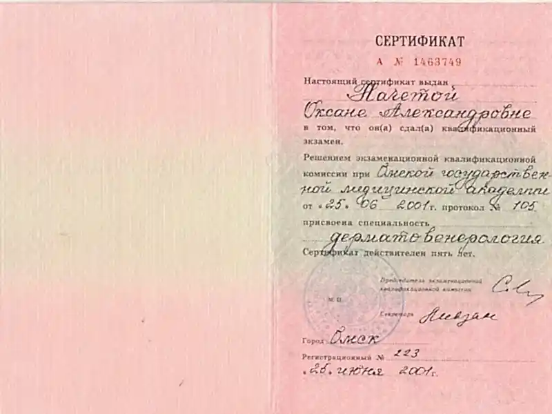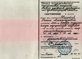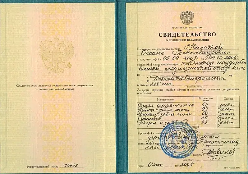 2005 г. Повышение квалификации по специальности «Дерматовенерология»