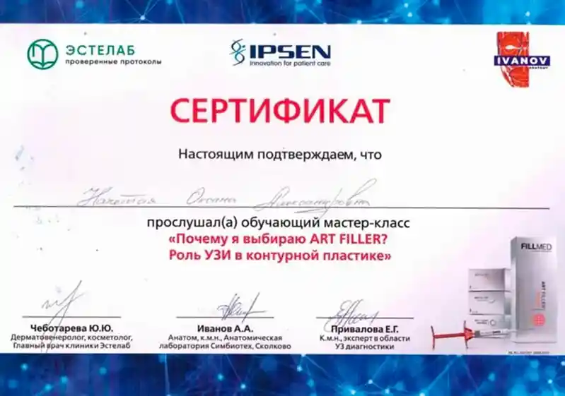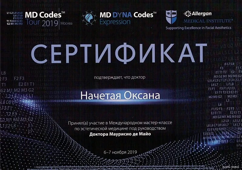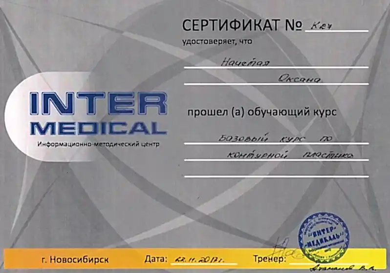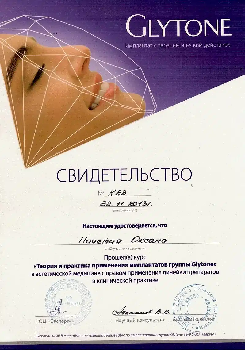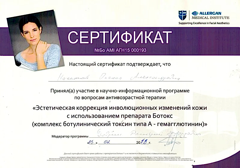2013 г. Сертификационный курс «Ботокс в косметологии»