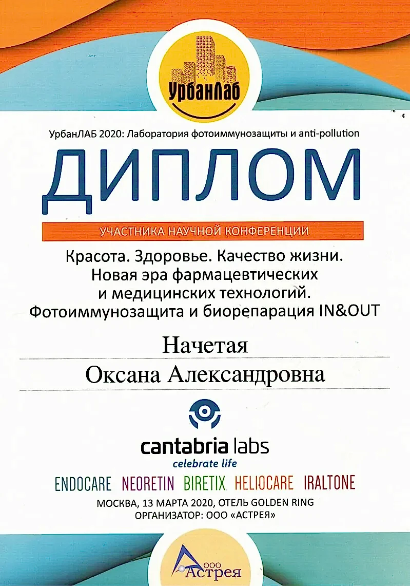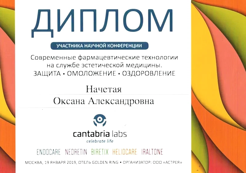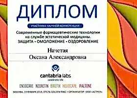 2019 г. Участник научной конференции «Современные фармацевтические технологии на службе эстетической медицины»