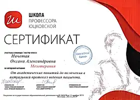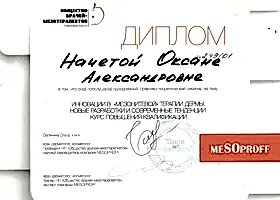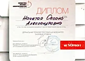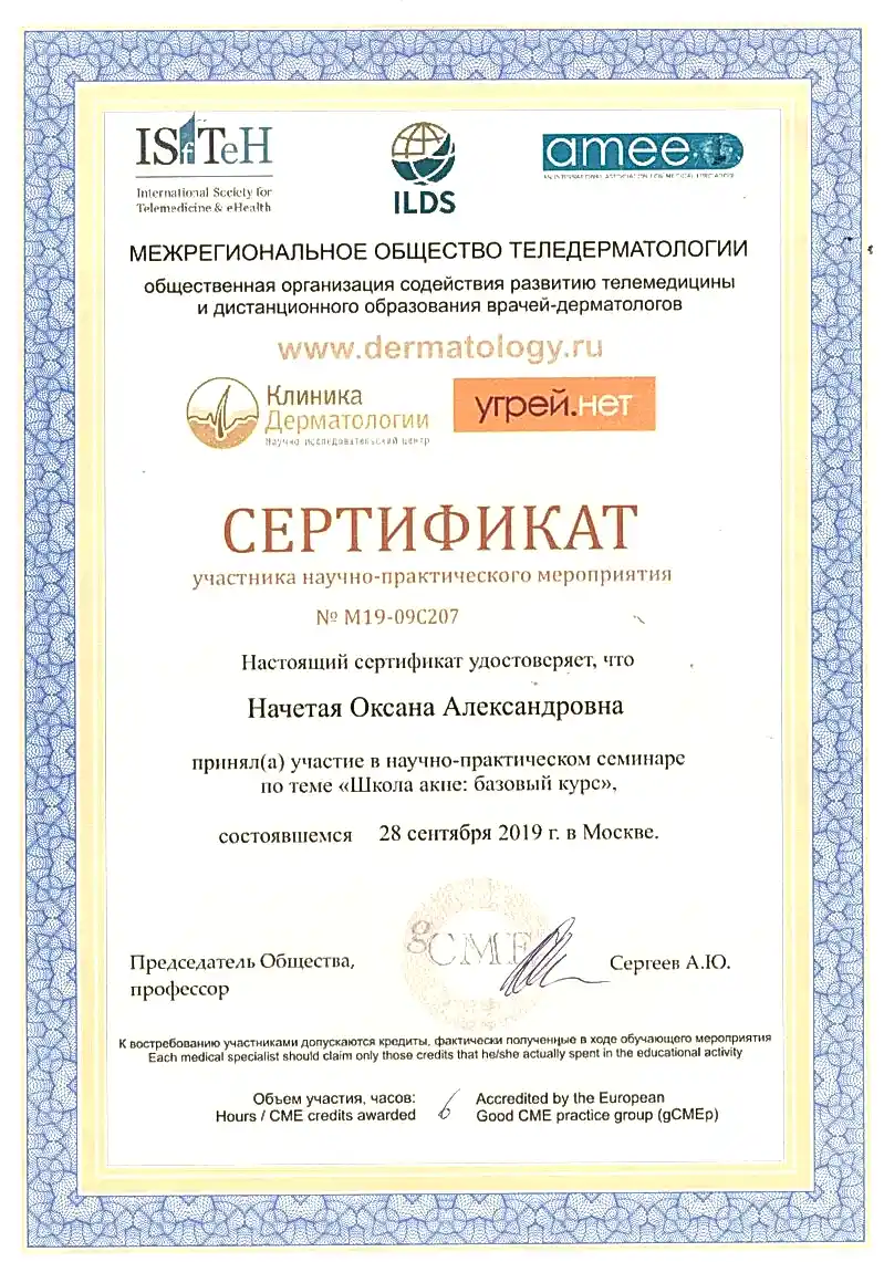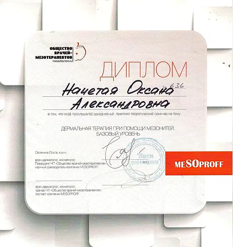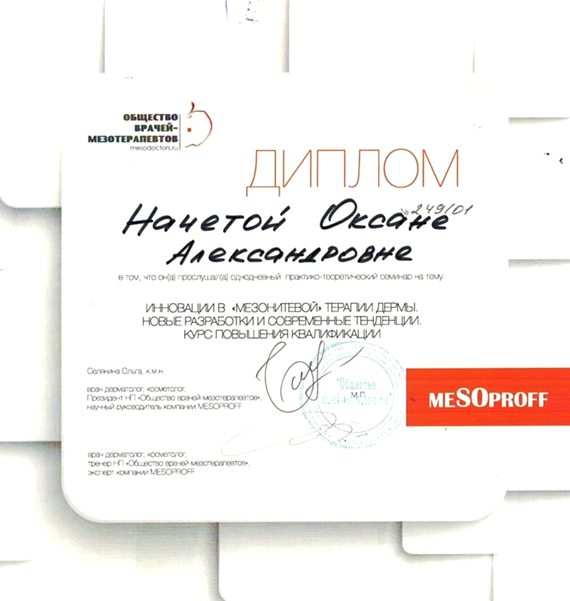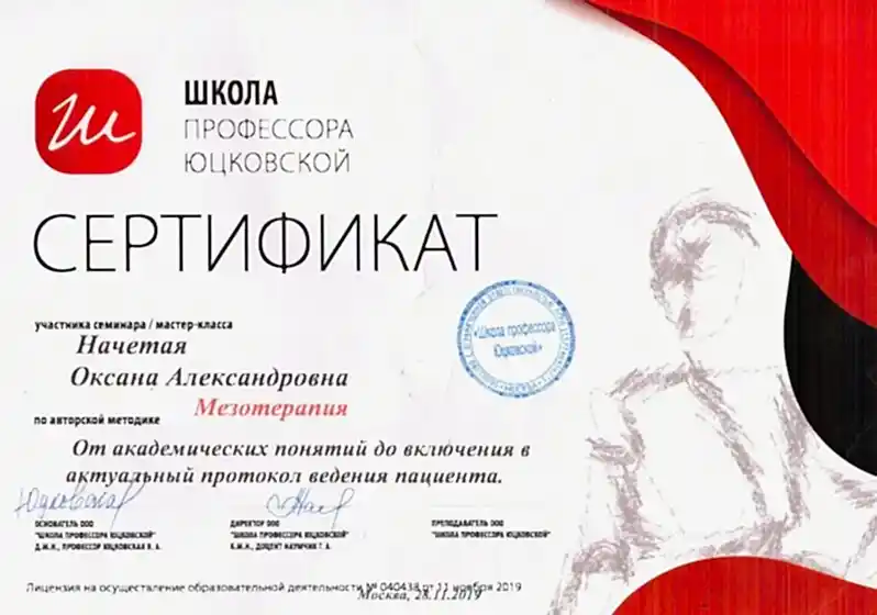 2019 г. Стажировка по мезотерапии . Углубленный курс . Школа профессора Юцковской