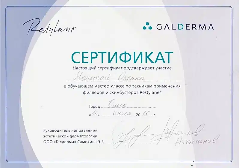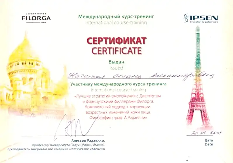 2014 г. Сертифицированный курс «Владение техниками введения Radiesse»