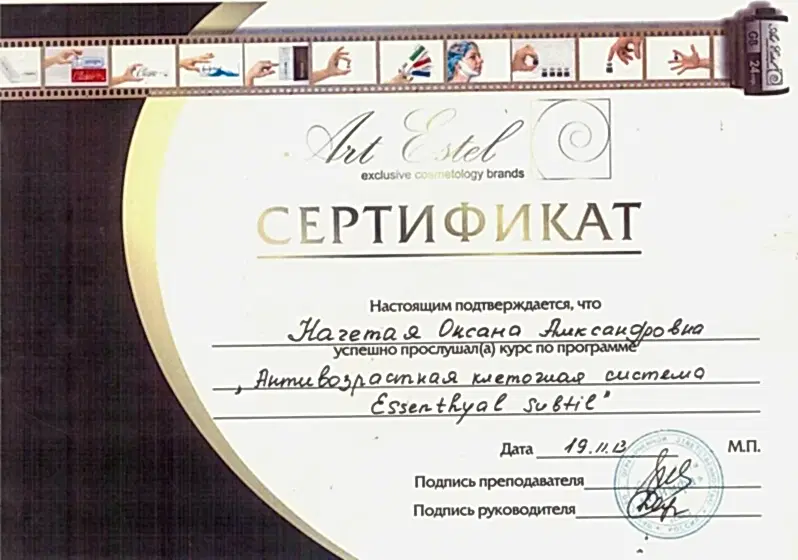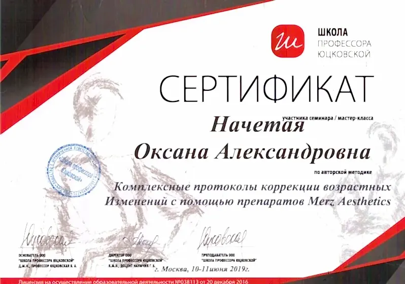 2019 г. Стажировка в клинике профессора Юцковской «Комплексные протоколы коррекции возрастных изменений»