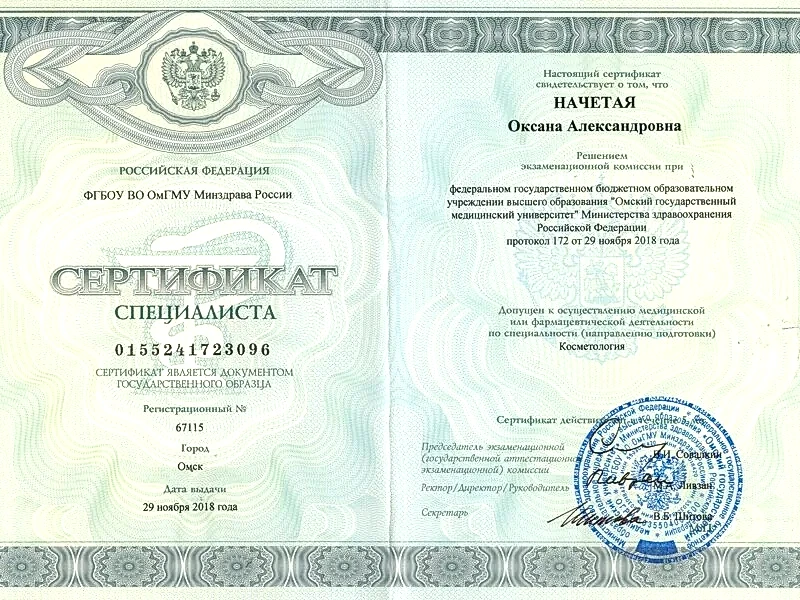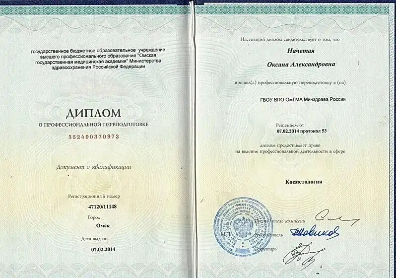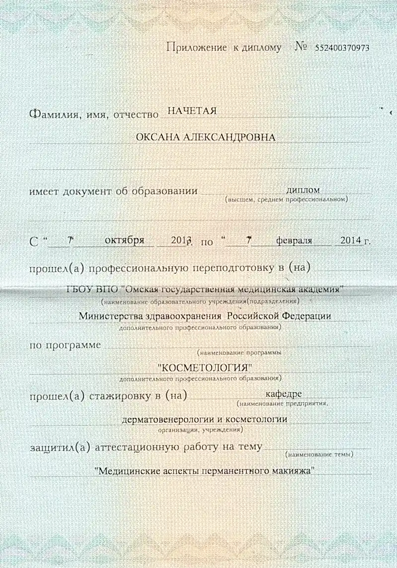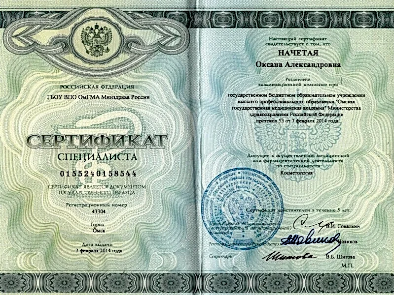 2014 г. Специализация профиль «Косметология» на кафедре «Дерматологии -венерологии» ОГМА