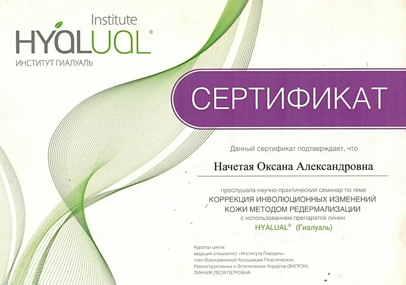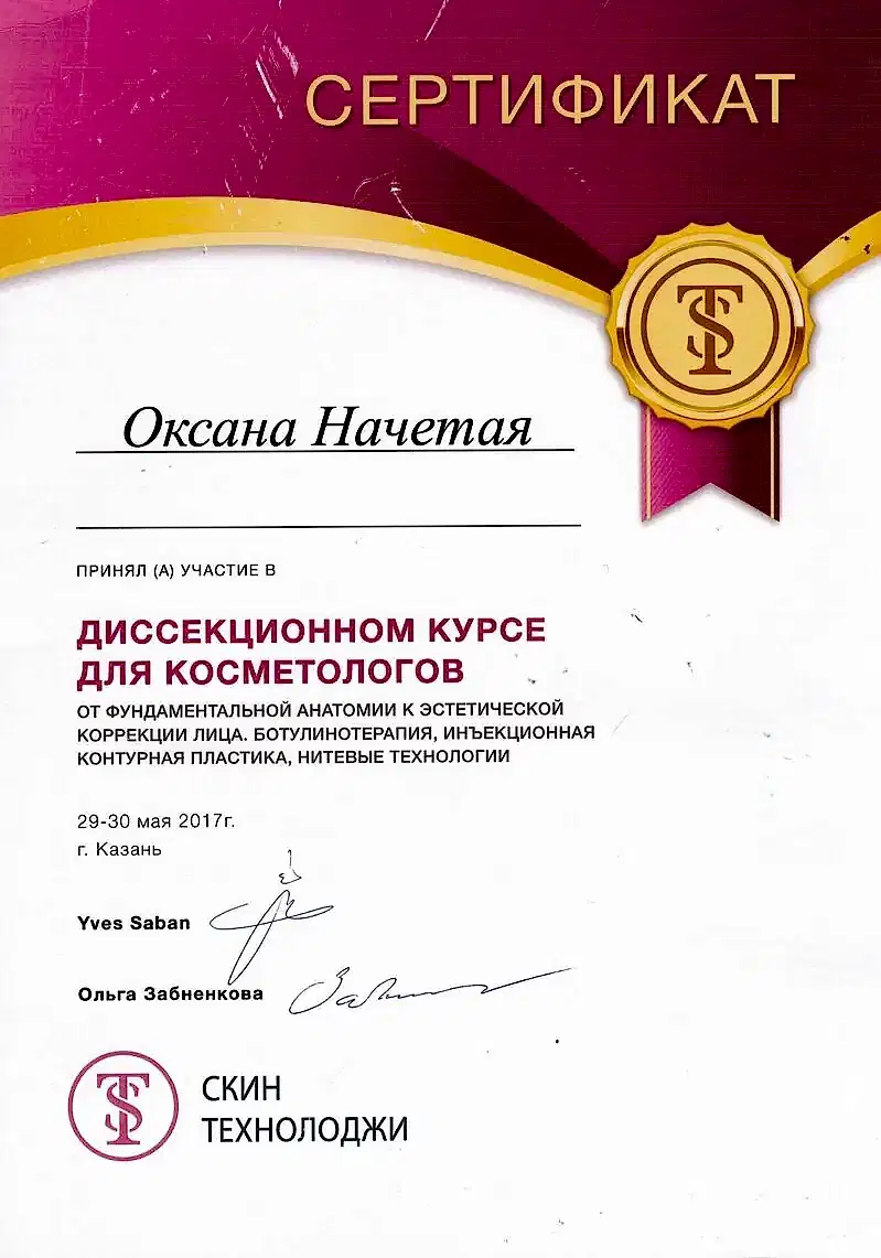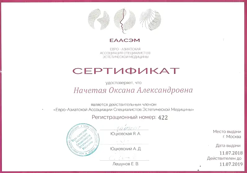 2014 г. Сертифицированный курс «Владение техниками введения Ксеомина»