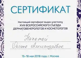 2018 г. Участник XVII Всероссийского съезда Дерматовенерологов и косметологов . г. Алматы