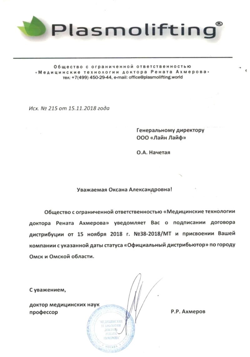 2018 г. Официальный дистрибьютор в Алматы технологии «Plasmolifting»
