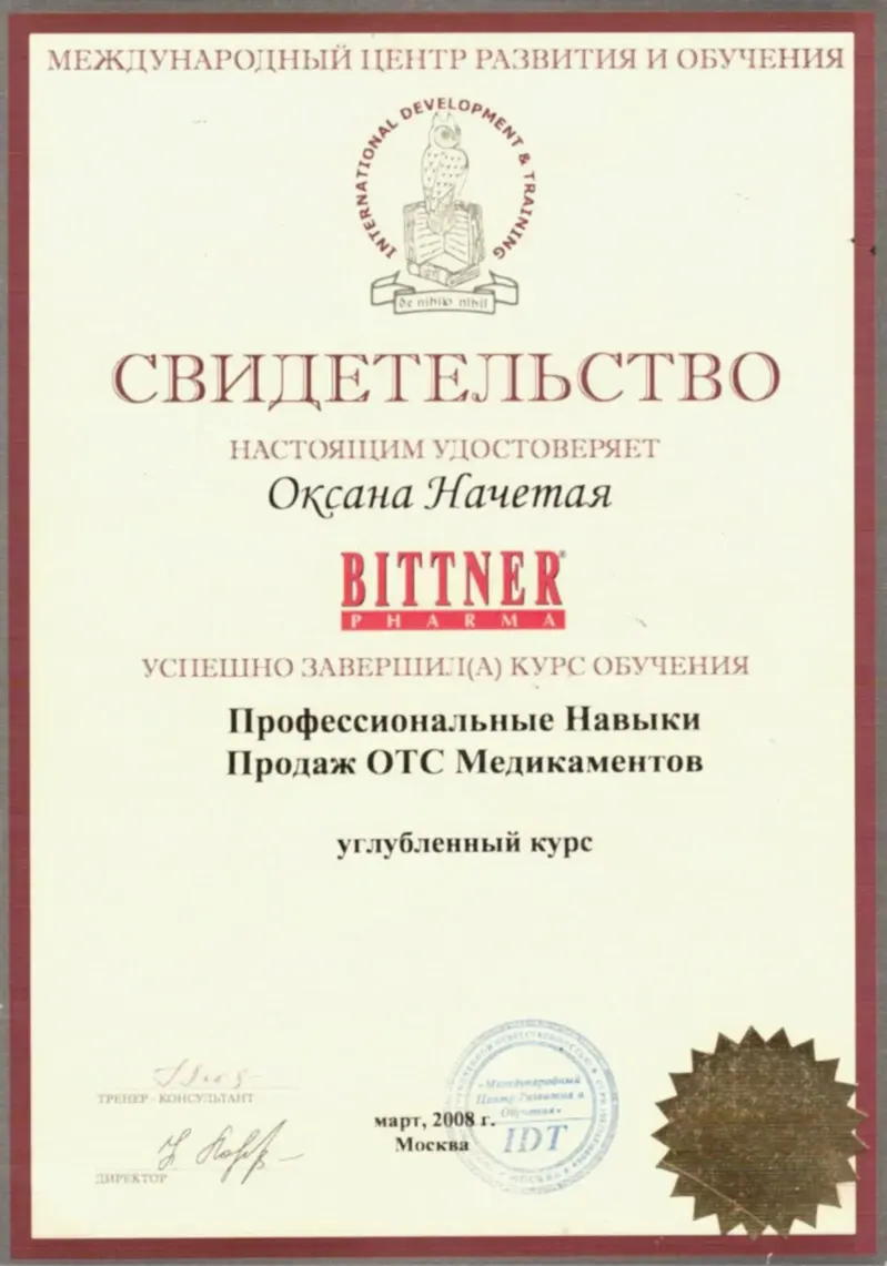 2008 г. Курс Профессиональные навыки продаж ОТС медикаментов