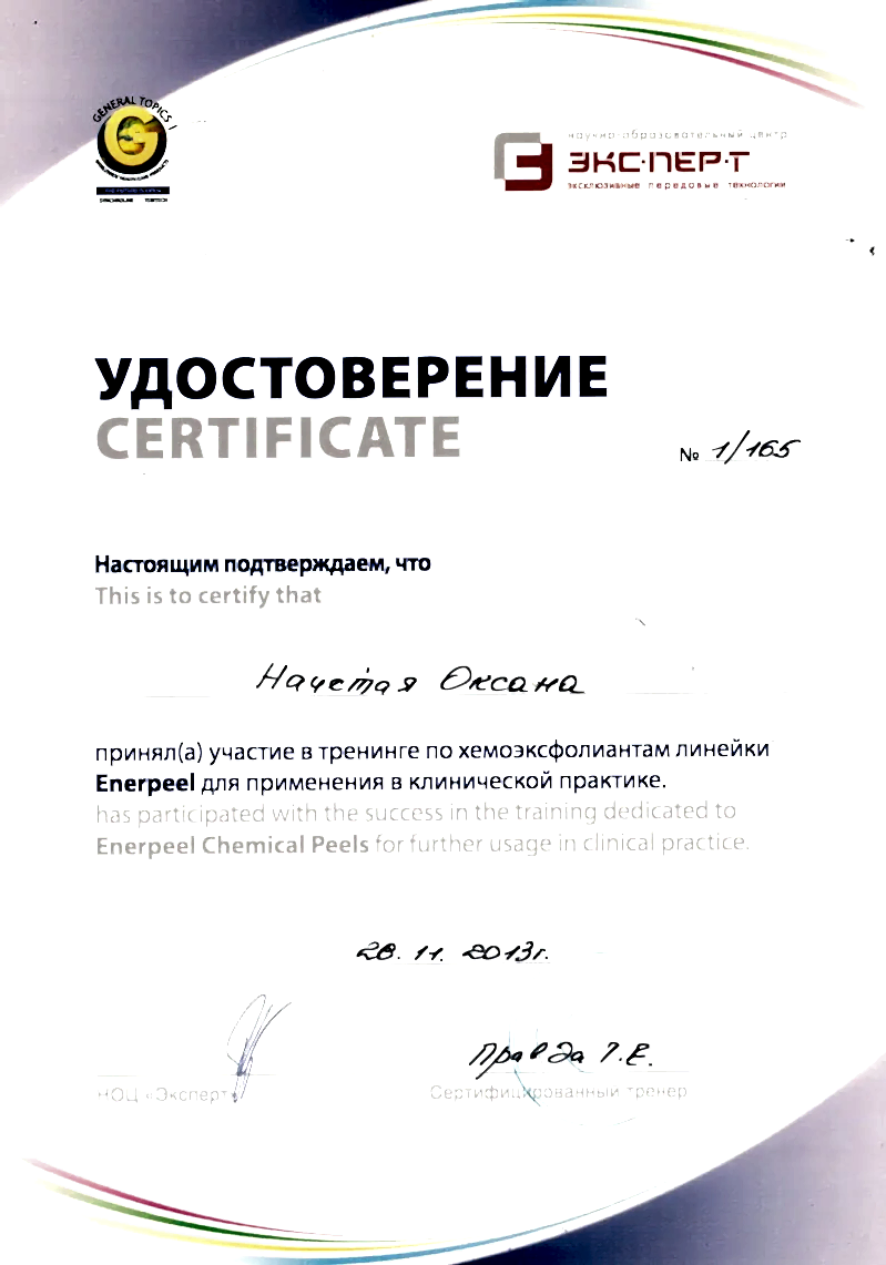2013 г. Тренинг по хемоэксфолиантамEnerpeel для применения в клинической практике