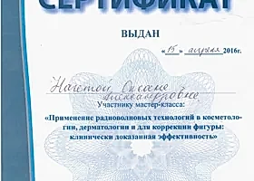 2016 г. «Применение радиоволновых технологий в косметологии , дерматологии и для коррекции фигуры»