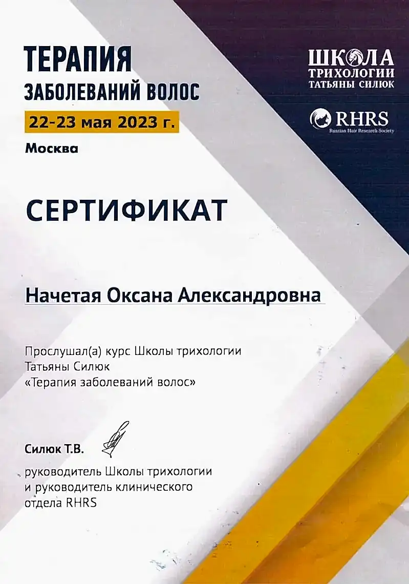 2023 г. Курс в школе трихологии Татьяны Силюк.