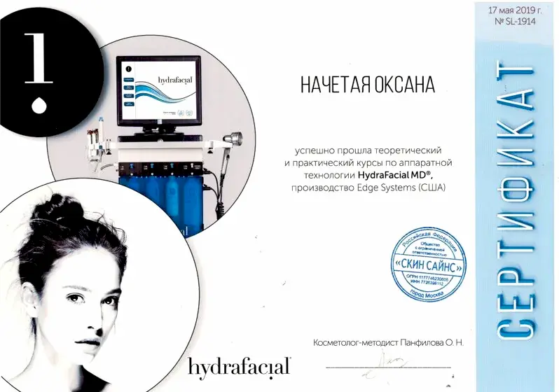 2019 г. Стажировка по использованию Аппарата HydraFacial (США). Алматы