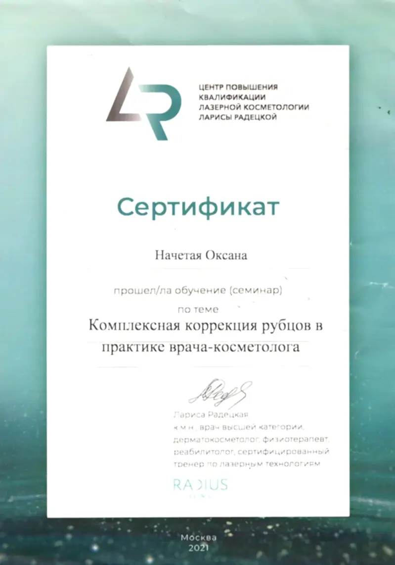 2021 г. «Комплексная коррекция рубцов в практике врача -косметолога» Центр повышения квалификации Ларисы Радецкой