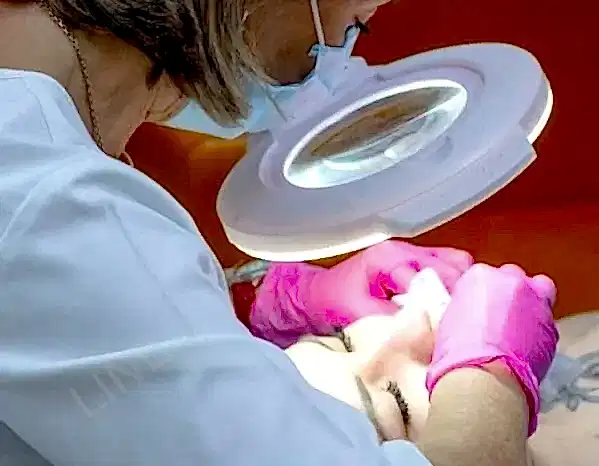 косметолог вручную или с помощью ложки Уно и Pin-Up инструментов извлекает комедоны и сальные пробки